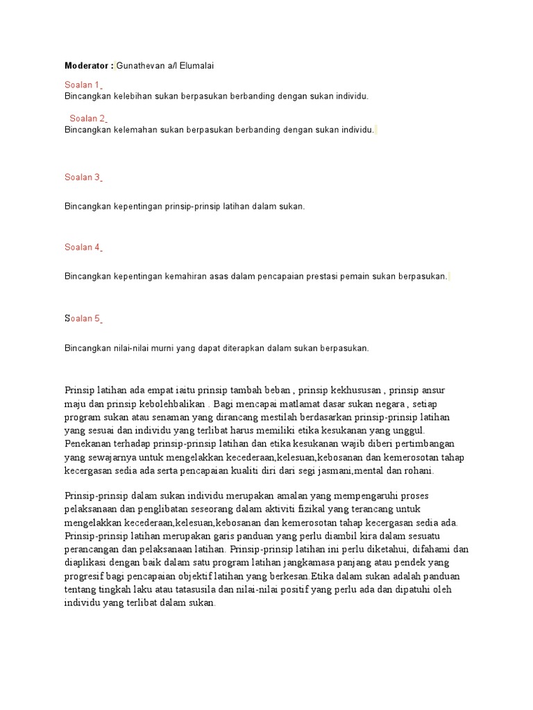 Contoh Soalan Kerja Berpasukan